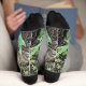 This fun Halloween socks are bright and colorful. The small print is crisp and shows the fun details. The softness of the socks feels nice on my feet and ankles. .