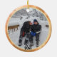 Both sides of this keepsake ornament feature a gold frame and customizable text for the year. Upload two of your favorite photos to personalize this keepsake ornament. This design makes a perfect gift for any age or gender!