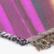 A quality printed throw has its advantages. This is a much finer weave throw than its loopier cousins, and though lighter, it is worth the investment for custom room accessorizing. The back is much prettier than the typical brown, and the fringe on the long sides very vivid, the selvage nicely done. Before photographing, I washed the throw in cold water, delicate, with a thicker woven throw the same size. On tumble dry low, this throw was dry in half the time as the other. This is a very practical quality if you use throws for furniture covers or to wrap up in frequently. The sleekness of the fabric makes it a great layer for accenting or protecting without the feeling of sitting on too much stuff. Perfect for napping or when you feel a light chill coming on. The color printing is beautiful and on this fabric, matched the design and color of my Photoshop image. This is an advantage for blending room fabrics and colors. The fringe on the short sides prints the colors from the design image and therefore varies from the side fringe. I streaked a white fractal line through the plaid pattern to give the illusion of weaving. This printed as crisp as an illusory thread, and put some white in the short side fringe, showing another advantage of print vs loomed- for artistic purposes, line lines, detail, and color integrity can be planned and preserved. My loomed throws have color limitations and more of a needlepoint texture. Print throws reproduce an exact image. The throw felt a little stiff straight out of the package, but this went away in the first delicate wash. Of course I searched the wash water for ink or bleeding and there was none.