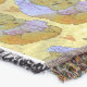 A quality printed throw has its advantages. This is a much finer weave throw than its loopier cousins, and though lighter, it is worth the investment for custom room accessorizing. The back is much prettier than the typical brown, and the fringe on the long sides very vivid, the selvage nicely done. Before photographing, I washed the throw in cold water, delicate, with a thicker woven throw the same size. On tumble dry low, this throw was dry in half the time as the other. This is a very practical quality if you use throws for furniture covers or to wrap up in frequently. The sleekness of the fabric makes it a great layer for accenting or protecting without the feeling of sitting on too much stuff. Perfect for napping or when you feel a light chill coming on. The color printing is beautiful and on this fabric, matched the design and color of my Photoshop image. This is an advantage for blending room fabrics and colors. The fringe on the short sides prints the colors from the design image and therefore varies from the side fringe. I streaked a white fractal line through the plaid pattern to give the illusion of weaving. This printed as crisp as an illusory thread, and put some white in the short side fringe, showing another advantage of print vs loomed- for artistic purposes, line lines, detail, and color integrity can be planned and preserved. My loomed throws have color limitations and more of a needlepoint texture. Print throws reproduce an exact image. The throw felt a little stiff straight out of the package, but this went away in the first delicate wash. Of course I searched the wash water for ink or bleeding and there was none.
