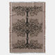 Tree with weeping branches/leaves. Image has been replicated and turned to give a kaleidoscope effect, resembling reflections. Background is tan/mauve in color.