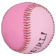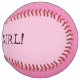 Pink softball with encouraging message to 'Throw like a Girl!'