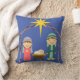 Cute Nativity scene with Mary, Joseph, and baby Jesus in a manger with a star on a deep blue background