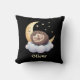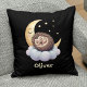 This adorable personalized throw pillow features a cute baby hedgehog curled up sleeping on a soft cloud under a crescent moon with glowing stars.