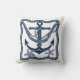 Throw pillow is shown in a navy and white color with a maritime anchor print.