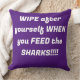 THIS 20X20 BABY PILLOW SAYS WIPE WIPE ME, WIPE BEHIND ME. CLEAN ME GOOD. THIS THROW PILLOW BABY SAYS WHEN I DO NUMBER 2 IN MY PAMPER WIPE ME AND CLEAN BEHIND ME GOOD. SHARKS IS ANOTHER NAME FOR POO POO,