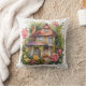 Cottage Design in Flowers on Throw Pillow.