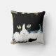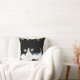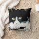 this throw pillow features a digital art photograph of a black and white cate. The image appears on both sides of the pillow.