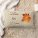 This throw pillow is shown in a beige neutral color with a Bless This Home text print with a pretty fall leaf accent.