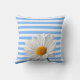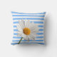 Throw Pillow Blue and White Stripe White Daisy