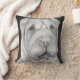 This unique black and white designer pillow shows the heads of a Chinese Shar-Pei dog . The image on this pillow is based on a painting titled " Sharpei".