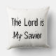 Throw Pillow with Jesus and the words "The Lord is My Savior" written on back of pillow