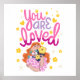 Spread warmth and positivity with this adorable women cartoon design, featuring a sweet character hugging a bouquet of flowers with the heartfelt message “You Are Loved.” The playful, uplifting illustration captures the joy of giving and receiving love, making it a perfect reminder of kindness, affection, and self-care.