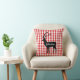 This throw pillow is shown in a cute red plaid Yellowstone Deer print design.