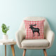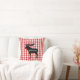 This throw pillow is shown in a cute red plaid Yellowstone Moose print design.