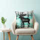 This throw pillow is shown in a pretty forest print with a Yellowstone Moose print design.