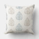 Throw Pillows with abstract floral patterns, leaf silhouettes, in soft pastel colors.