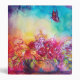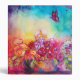 Whimsical ,colorful and vibrant watercolor painting in bright red,pink,fuchsia,yellow,blue.green ,purple colors .2009 . Illustration for an Andersen tale. A little ,tiny child who was born in a flower , who slept in a walnut shell, who rowed about on a tulip leaf ...