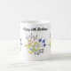 Customizable 60th Birthday Thunderbirds birthday coffee mug, featuring iconic views of the US Thunderbirds aerobatic squadron making a celebratory flypast, with red, white and blue trails, through a golden 60.