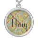 Thuy name with abstract art background silver plated necklace