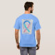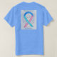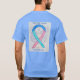 Thyroid Cancer awareness uses a teal, blue, and pink ribbon for its cause awareness. The shirt art features a teal, blue, and pink awareness ribbon angel painting. The awareness angel t-shirt message notes "Thyroid Cancer Awareness". There is a large image on the back of the shirt and a smaller picture on the front of the shirt. The teal, blue and pink awareness angel ribbon art apparel can be customized with personalized messages to make great cause event clothing for fundraiser shirts, group team walk shirts, awareness tshirt gifts, or other special cause events occasions for merchandise to help increase this cause's awareness in public for society's help in creating help & cause change.
