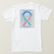 Thyroid Cancer awareness uses a teal, blue, and pink ribbon for its cause awareness. The shirt art features a teal, blue, and pink awareness ribbon angel painting. The awareness angel t-shirt message notes "Thyroid Cancer Awareness". There is a large image on the back of the shirt and a smaller picture on the front of the shirt. The teal, blue and pink awareness angel ribbon art apparel can be customized with personalized messages to make great cause event clothing for fundraiser shirts, group team walk shirts, awareness tshirt gifts, or other special cause events occasions for merchandise to help increase this cause's awareness in public for society's help in creating help & cause change.