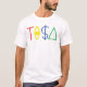 The shirt is good quality and fits just fine, but the colors of the printing are not as bright as in the sample photo. Not the best. The colors are a lot brighter in the sample photo; when I received the shirt they appeared faded. The red looks a little more pink and the blue is a lot lighter. N.B. I did not wash the shirt yet.