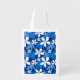 I own a lot of reusable grocery bags, but this one holds its box shape and simply stands up on its own even if there is nothing in it. Its stiffer than your regular reusable bag too, and the material is water resistant. I poured water on the exterior and it didn't penetrate inside to the other side. I'm buying a couple more. Wish I knew how durable these bags were or I would have purchased a few more with my initial order. I also like how it folds and buttons up when not in use, making it easy to put into a handbag or luggage. I haven't used this bag yet, as I purchased it for travel use, like when you're at the airport and need to small sturdy bag to place any airport purchases in, like food, souvenirs etc. I can tell you when you first see this bag, it looks very cheap, but after closer inspection of the material and the seams its a very sturdy reusable bag. I tested it out by putting some really heavy objects inside and I could not observe any stress to the bag at all. Another thing I like about it, is the fact the medium size that this is makes it easy to just carry it in your hand without the bottom of the bag scraping the ground, like most other bags do when you're short. That alone, deserves 5 stars. I just wish there were more colors to choose from! The PDX Airport Carpet printing looks just like the photo, and using this bag during travel might be a conversation piece when/if a native from Oregon happens to see it.