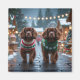 This festive design captures the joyful spirit of the holiday season, featuring an adorable dogs.Nestled in a winter wonderland, complete with a decorated Christmas tree, and beautifully wrapped presents. Snowflakes gently fall, adding a magical touch to the scene, while the vibrant colors of the holiday decorations create a warm and cheerful atmosphere.