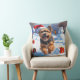 Tibetan Terrier Running in Snow with Christmas Hat Throw Pillow