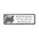 Awesome monochrome Tibetan Terrier address labels for the modern dog lover. A gray breed silhouette stands stacked in front of a silver paw print, with a squiggly background.
