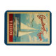 This Greetings From Tiburon California vintage travel nautical design features a boat sailing on the water with seagulls and a blue sky filled with gorgeous puffy white clouds.