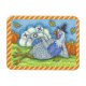 FUN LOVING TURKEY ENJOYING A GAME OF TIC TAC TOE. THANKSGIVING HOLIDAY MAGNET Orange Stripe Border .... Look For Matching Items Susan Brack Design