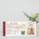 Plain white envelopes are included with paper invitations and will come to fit the invitation size you select. If you don’t need the envelopes, you may choose to not receive them by selecting the dropdown below "Envelopes" and choosing "None." If you’d like to have a design on your envelopes, you can browse all of these available envelopes to find the design that complements your Ticket Save The Date With Photo Wedding Invitation.
