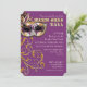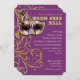 COLOR PALETTE: deep purple, gold metallic look, silver metal look and black DESIGN COLLECTION: A vintage Venetian party mask for a jeweled masquerade ball with elegant, classic scroll swirl flourishes in a faux golden glitter with a twinkling sparkle sets off this ticket style invitation that has been set up with fundraising wording as an option. It is easy to change out for your own wording if needed using the template fields. The reverse side has the damask style swirling pattern.