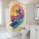 Transform your bathroom into a surfer’s sanctuary with the “Tidal Bones” shower curtain. Featuring the iconic image of a skeleton effortlessly riding a wave, this design captures the essence of surf culture with a playful twist. The backdrop of a sunset ocean scene, in warm hues of orange and yellow, sets a relaxed yet adventurous mood. The skeleton, in a dynamic pose on the surfboard, is surrounded by splashes of vibrant blues, pinks, and purples, symbolizing the lively spirit of the sea. This shower curtain is not just a functional item but a statement piece that brings a touch of whimsy and color to your daily routine. It’s perfect for those who love to combine their passion for surfing with a unique, edgy style in their home decor.