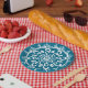 This white mandala sits on a teal background. The colors are very calming and peaceful. Part of the Payon Mandala Collection.