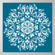 This white mandala sits on a teal background. The colors are very calming and peaceful. Part of the Pras Mandala Collection.
