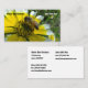 The front of this business card is covered with a closeup photograph of a honeybee collecting nectar from a yellow flower with white-tipped petals. I'm pretty sure the flower is Coastal Tidy Tips (Layia platyglossa), a California native plant. There is room for your business name on the left side and your name on the right side. All of the contact details are written on the plain white back. Because of the bee it is a great business card for a beekeeper, apiary, provider of pollination services, honey or pollen vendor or maker of bee based products. But it is also a photograph of a pretty flower so it could be used for a nursery, florist or anyone working with wildflowers.