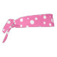 This tie back headband is shown in a cute hot pink and white polka dots print.