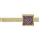 Tie bar is shown in a gold tone plated finish in a stylish swirl flourish print.