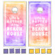 Spice up your next family reunion, vacation or outdoor get-together with this groovy tie dye cornhole set! This board features a retro, west coast style, with text reading “Life is Better at the Beach House”. Perfect for a summer stay at your beach house with family, this set is sure to be the life of the party. Personalize with your location and family name (or names) for a totally unique outdoor game set! Give off pretty 60's and 70's vibes with these stylized, vintage fonts and bright rainbow watercolor tie dye background!