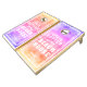 Natural Wood Cornhole Set, Yellow and Purple bags