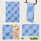 The tie dye look of this blue and white kitchen towel with a checkered pattern of outlined diamonds of black and white, is a bright airy design inspired by white clouds and black telephone wires against a clear blue sky. It is Boho chic with a hint of hippie with its diamonds in the sky look. It is a naturally beautiful bright geometric pattern that you Personalize with an Monogram or Initials.