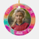 Tie Dye Border with Photo and Year - pink teal Ceramic Ornament