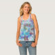 A fun allover tie dye design. Great for the summer, and colorful enough to wear with anything. A casual artistic and unique tank top. This is what I used to wear back when I was a hippie. Those were some good days. This creation is still popular even today. Have fun wearing your fashion casual