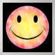 Black poster with yellow and pink tie dye face.
