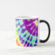 A colorful tie dye pattern on a magic morphing coffee cup. The mug is heat sensitive, and will change color with hot liquids.