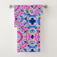 Tie Dye Mandala Pattern Denim Blue and Pink Bath Towel Set