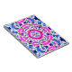 Notebook in a digital tie dye mandala pattern in shades of denim blue and rose pink
